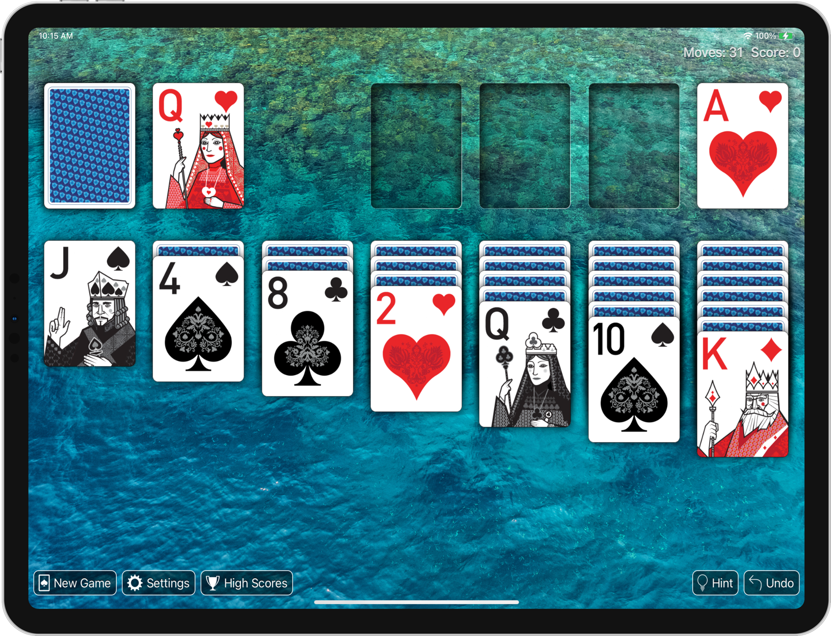 Real Solitaire for iPad is the ultimate solitaire game (also called Klondike or Patience). A modern design enhanced for large screens (including the Ultra Retina XDR display), easy to read cards, beautiful graphics, fun holiday themes, and cool features make Real Solitaire the one game you won't be able to put down.